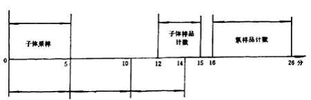 氣球法采樣系統(tǒng)示于圖4,其工作原理同雙濾膜法,只不過氣球代替了衰變筒。把氣球法測(cè)氡和馬爾柯夫法測(cè)潛能聯(lián)合起來,一次操作用26min,即可得到氡及其子體α潛能濃度。其時(shí)間程序示于圖5。